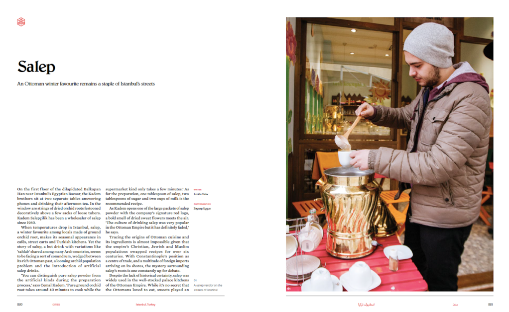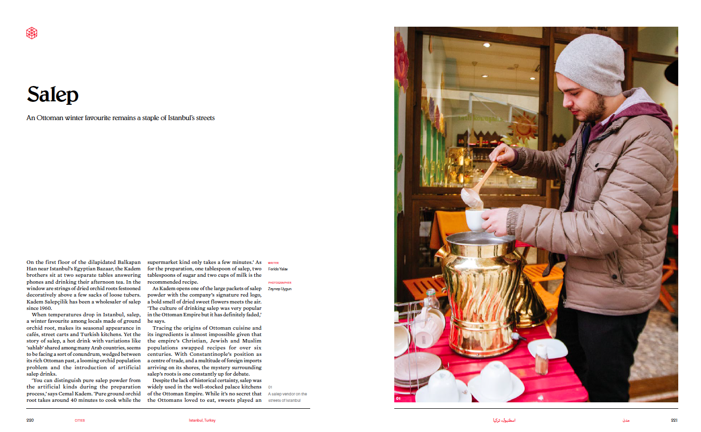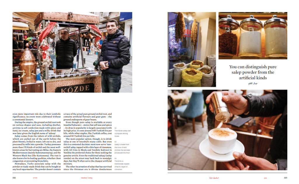 As Kadem opens one of the large packets of salep powder with the company’s signature red logo, a bold smell of dried sweet flowers meets the air. ‘The culture of drinking salep was very popular in the Ottoman Empire but it has definitely faded,’ he says.