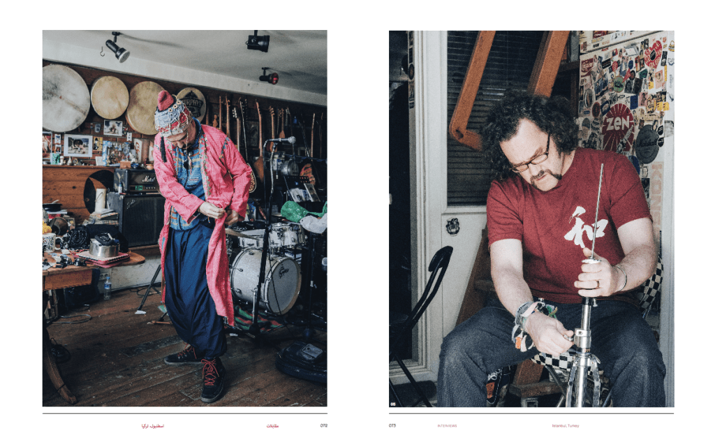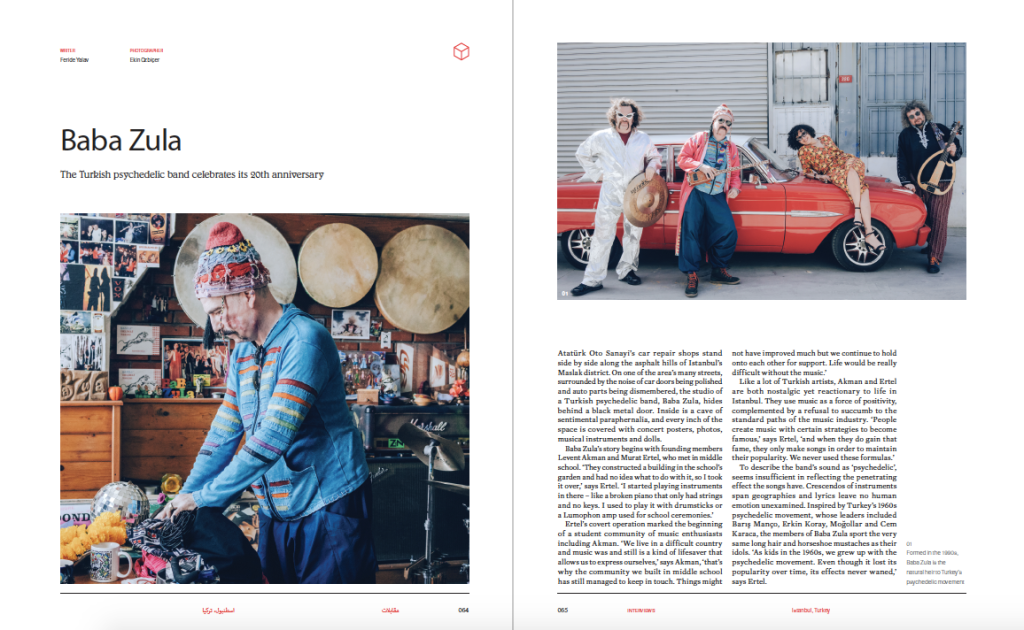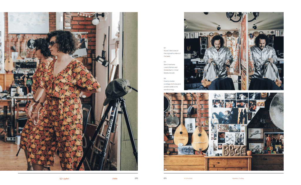 Atatürk Oto Sanayi’s car repair shops stand side by side along the asphalt hills of Istanbul’s Maslak district. On one of the area’s many streets, surrounded by the noise of car doors being polished and auto parts being dismembered, the studio of a Turkish psychedelic band, Baba Zula, hides behind a black metal door. Inside is a cave of sentimental paraphernalia, and every inch of the space is covered with concert posters, photos, musical instruments and dolls.