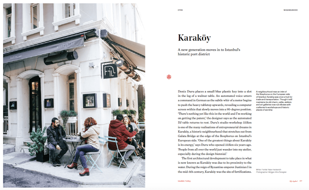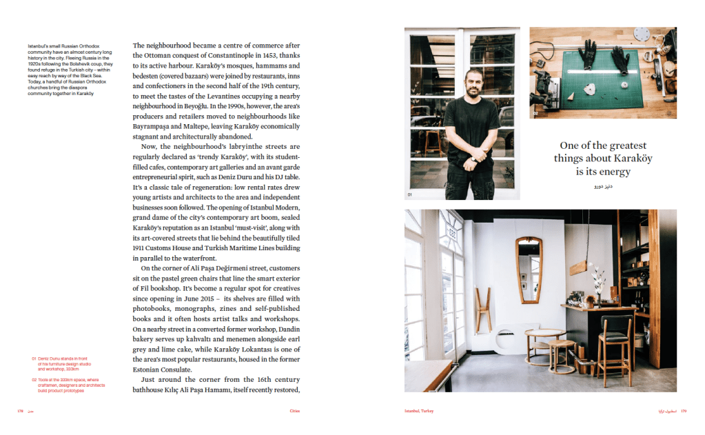 Deniz Duru places a small blue plastic key into a slot in the leg of a walnut table. An automated voice utters a command in German as the subtle whir of a motor begins to push the heavy tabletop upwards, revealing a computer screen within that slowly moves into a 90-degree position. ‘There’s nothing yet like this in the world and I’m working on getting the patent,’ the designer says as the automated DJ table returns to rest. Duru’s studio-workshop 333km is one of the many realisations of entrepreneurial dreams in Karaköy, a historic neighbourhood that stretches out from Galata Bridge at the edge of the Bosphorus on Istanbul’s European side. ‘One of the greatest things about Karaköy is its energy,’ says Duru who opened 333km six years ago. ‘People from all over the world just wander into my atelier, especially during the design biennial.’