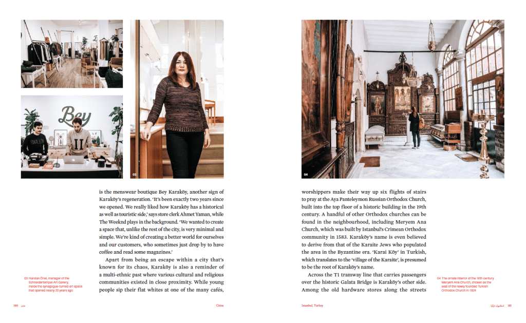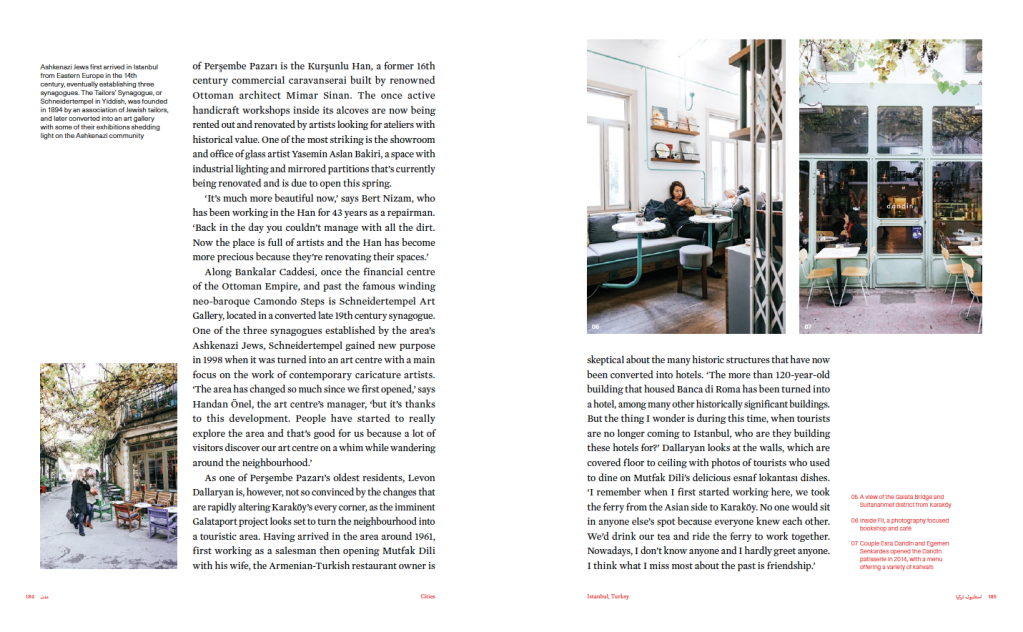 On the corner of Ali Paşa Değirmeni street, customers sit on the pastel green chairs that line the smart exterior of Fil bookshop. It’s become a regular spot for creatives since opening in June 2015 – its shelves are filled with photobooks, monographs, zines and self-published books and it often hosts artist talks and workshops. On a nearby street in a converted former workshop, Dandin bakery serves up kahvaltı and menemen alongside earl grey and lime cake, while Karaköy Lokantası is one of the area’s most popular restaurants, housed in the former Estonian Consulate.