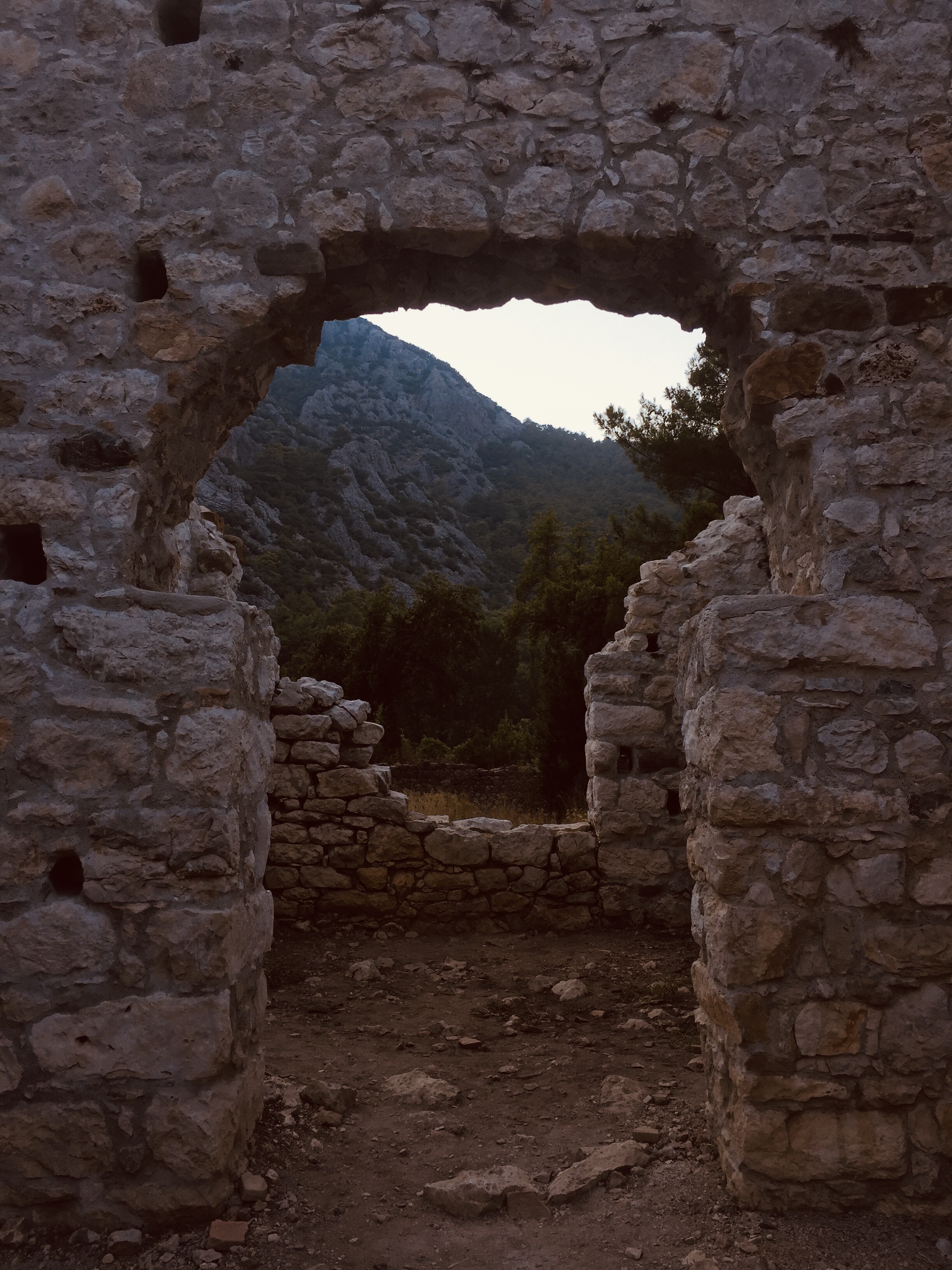 Once you’ve settled into your room and taken a dip in the beautiful sea surrounded by dark green mountains, it’s time to get a little active and do some sightseeing. At the end of Çıralı’s beach, you’ll find the ruins of Olympos, an ancient city that belonged to the Lycian Empire, built during the Hellenistic Period. After walking along a river studded with flower bushes and small streams, you can follow the signs to see the ruins of the historic city including the remains of a Roman temple, bathhouse, and more.