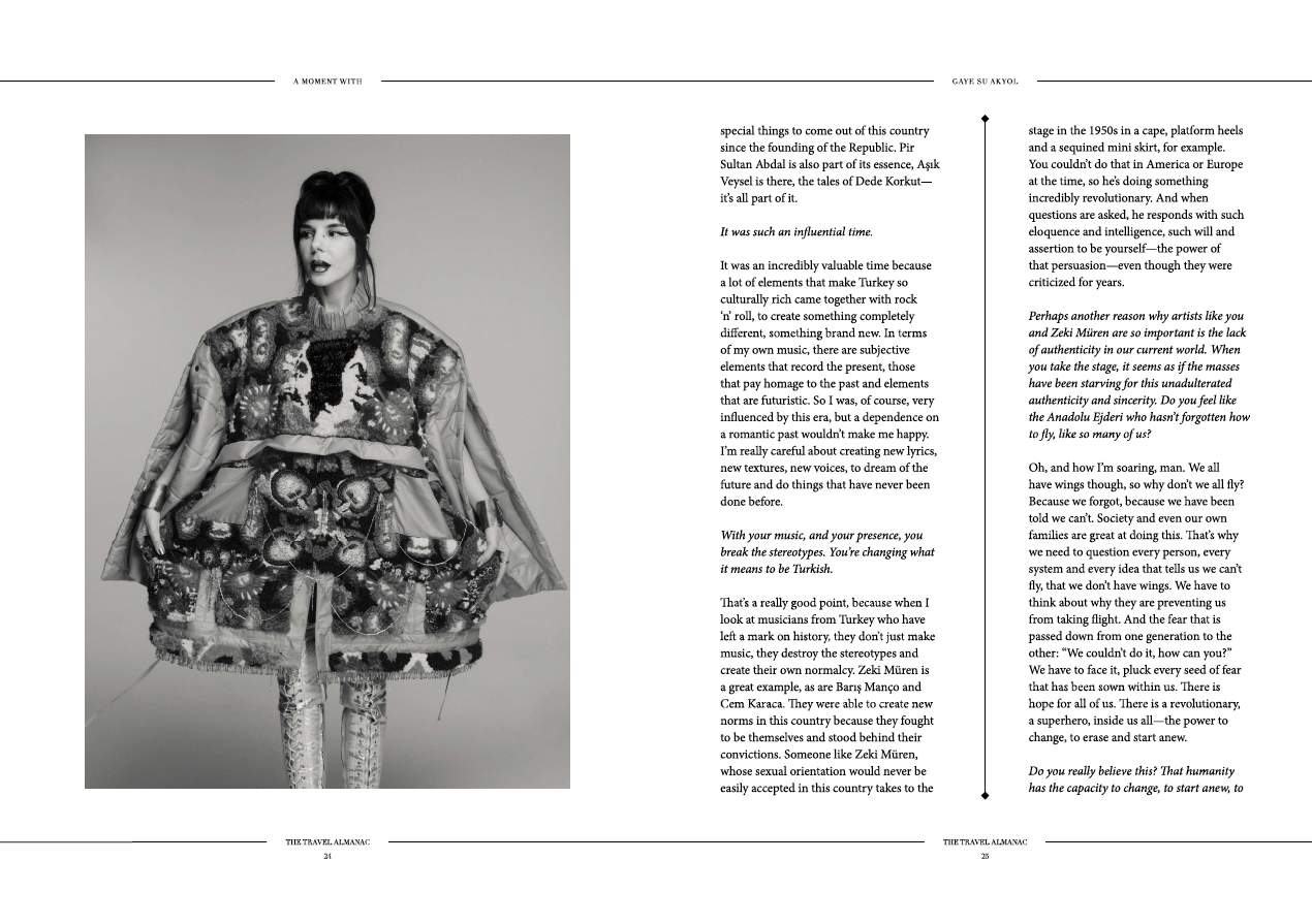 Of all the ways Gaye Su Akyol has been defined, none of them quite suffice. She is unequivocally herself, defying categorization by moving and growing deftly through different genres, steered by an era of Turkish psychedelic music—an emotional nucleus of inspiration. The ballads of this golden period of liberated creativity in Turkish history began in the mid 1960s, before being interrupted forcefully by the military coup on September 12th 1980. The music her parents listened to, the songs she grew up with, are a celebration of Turkish folk music and the unadulterated freedom of rock ‘n’ roll. Akyol continues to embody the values of this era, but in her own way, through her own phantasmagorical world of superheroes steeped in unabashed sensuality and powerful femininity—hard edges and truths dressed in shimmering capes and thigh-high iridescent boots.